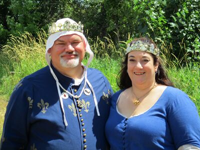 Evrard de Valogne and Alessandra da Montefeltro served as the second Baron and Baronessa of Wyewood from 24 March AS LI/2016 through 3 August AS LIV/2019.