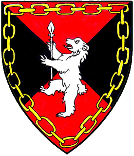 [[File:AleksiiKonstantinovichChernoi.gif|thumb|300px|left|Per saltire gules and sable, a bear rampant maintaining a spear argent within an orle of chain Or.]] | |||