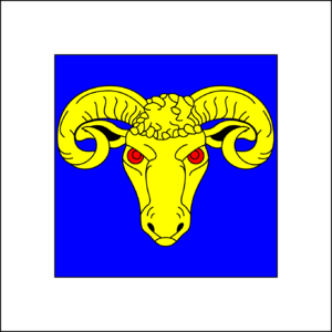 | devicecaption= Per chevron azure and argent, two rams combatant Or, and a laurel wreath gules. | |||