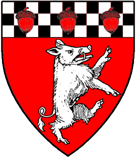 | devicecaption = Gules, a boar rampant to sinister argent and on a chief checky argent and sable three acorns gules. | |||