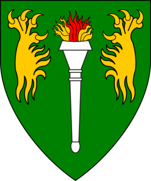 [[ | [[File:RowanDevice.png|thumb|300px|right|Vert, a torch argent enflamed at the tip proper between two panther's gambs palewise erased Or.]] | ||