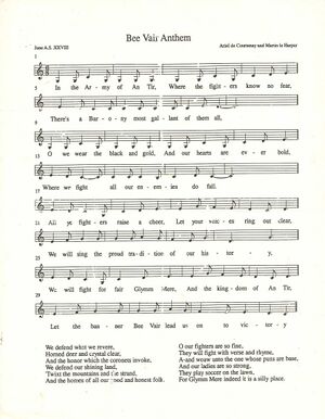 [[File:Beevairanthem.jpg|thumb|The Bee Vairian Anthem by Ariel and Martin, 1994.]] | |||