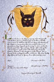 | 06:46, 30 April 2025 | PrionsaBanphrionsa.jpg (file) | 129 KB | Viscountess scroll for Lenore of Lynxhaven issued by Gerald and Barbara signing as Prionsa n’An Tir and Banphrionsa n’An Tir in AS IX (1974). | 1 | |