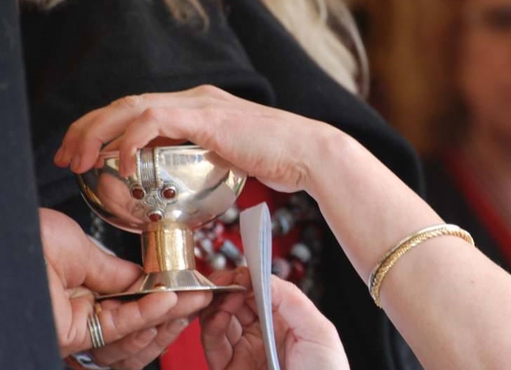 Vesta swearing on the Grail of the Summits, image courtesy of Duchess Dagrun Stjarna