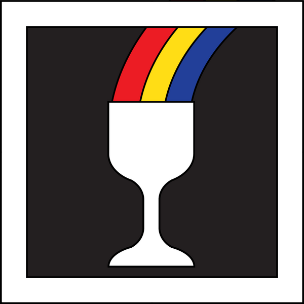 Michael Maximillien de Champagne Badge 2: Sable, issuant to chief from a cup argent a rainbow throughout proper, a bordure argent.