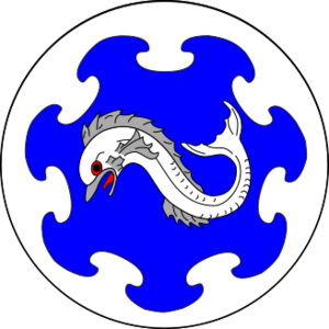 Blazon: Azure, a dolphin and a bordure nebuly argent