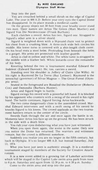 Article about the SCA and Silvae Magnae in an article from the Daily Olympian, July 7, 1974.