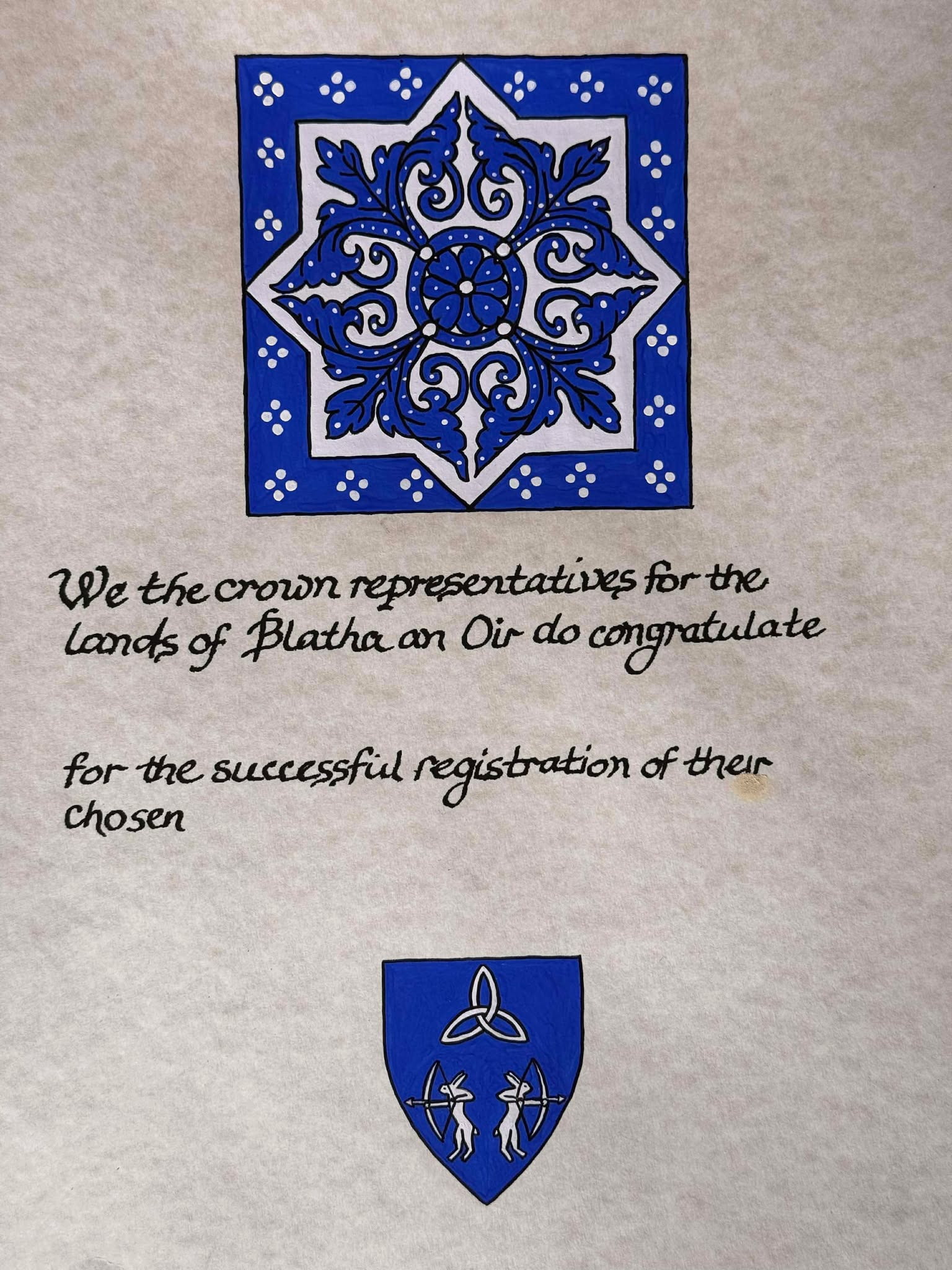 Registration token for Weylon illuminated by Marjorie Le Roux.