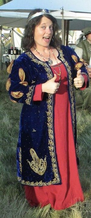 It was after her first ten years in the SCA that she got involved in official activities, stepping in as court coordinator for Luciano and Elizabeth. This opened the floodgates as she discovered her skills in public speaking and organization had a very fitting home behind the thrones. As her wordfame in court heraldry grew, so did requests for her to take on the mantle of Royal Herald from those stepping up to wear the Coronets of the Summits. The next ten years looked like this:
