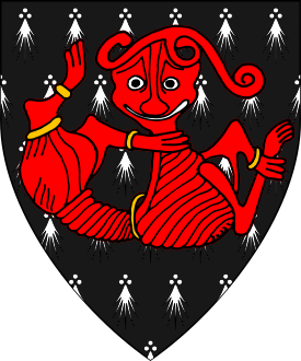 ![]() Counter-ermine, a Lisbjerg gripping-beast gules. |