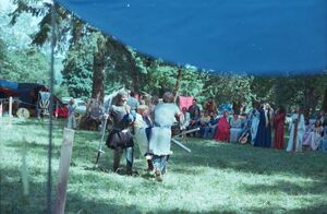 There were, in addition, a number of contests: Jewelry was won by Michael of Dragonswood and Steingrim Stallari; Weapons, by James of Northkeep; Armour, Blackhand; Pavilion, Blackhand and Ludwig von Lemminghaus; Footwear, Blackhand; Best Decorated Object, Edwin of Svartelder. The best pages and ladies-in-waiting were also given prizes. The winners were Kieka of Valfriborg, Melissa Kendal, and Andre Lesard.