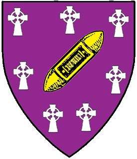 ![]() Purpure, a shuttle bendwise sinister Or within an orle of Celtic crosses argent. |