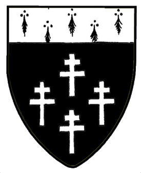 ![]() Sable, four patriarchial crosses in cross argent, a chief ermine. |