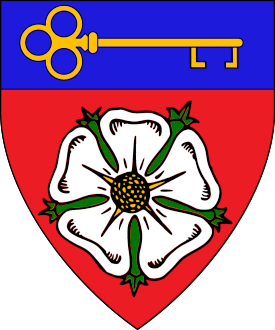 ![]() Gules, a rose argent and on a chief azure a key reversed Or |
