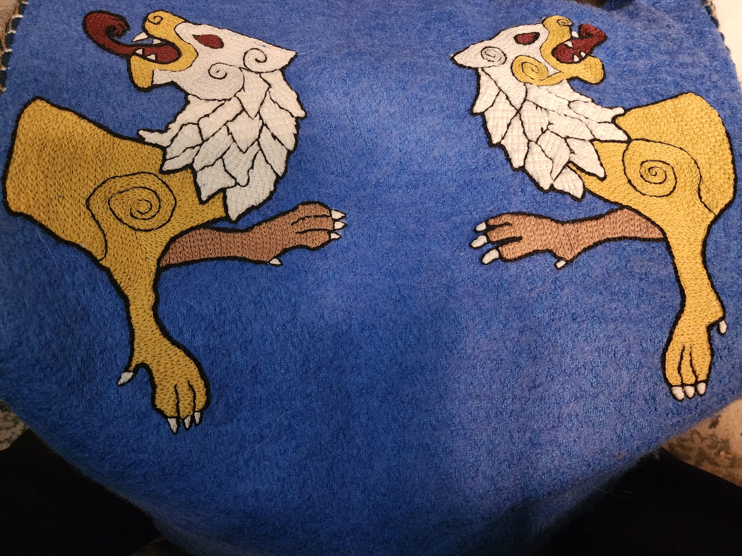 An example of Anastasia's embroidery - haversack, wool chain stitch on boiled wool