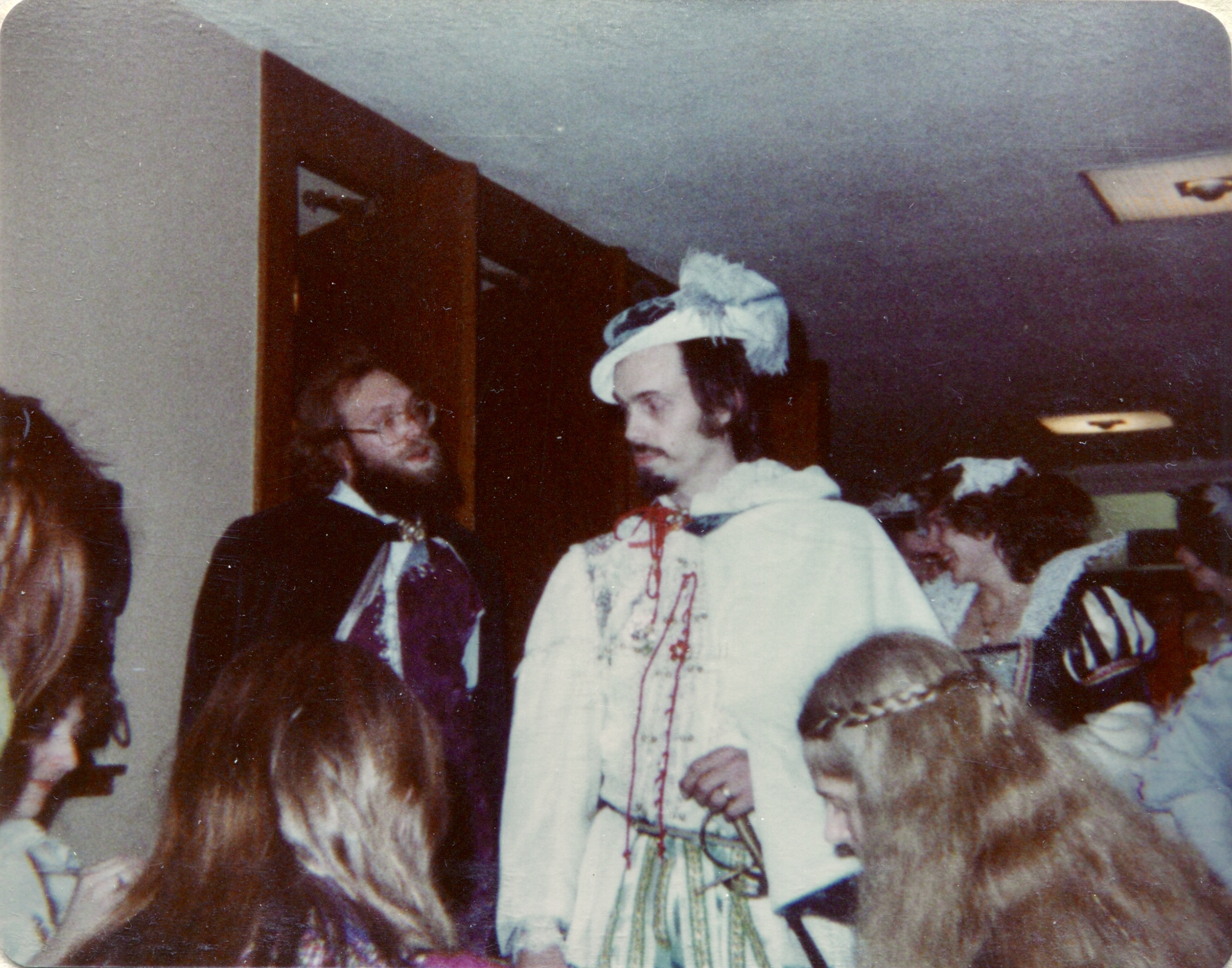 An Tir 12th Night, January 16, 1982. An Tir becomes a kingdom. Manfred and Morag are crowned King and Queen. From the Hroswitha & Knut collection, Scanning An Tir Project.