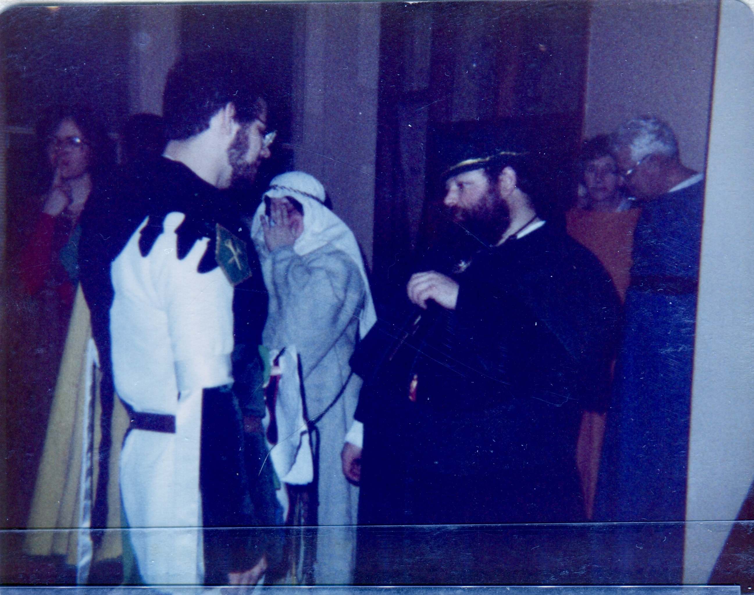 An Tir 12th Night, January 16, 1982. An Tir becomes a kingdom. Manfred and Morag are crowned King and Queen. From the Hroswitha & Knut collection, Scanning An Tir Project.
