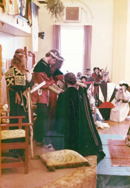 An Tir 12th Night, January 16, 1982. An Tir becomes a kingdom. Manfred and Morag are crowned King and Queen. Courtesy of the Lee of the Lowlands collection, Scanning An Tir Project.