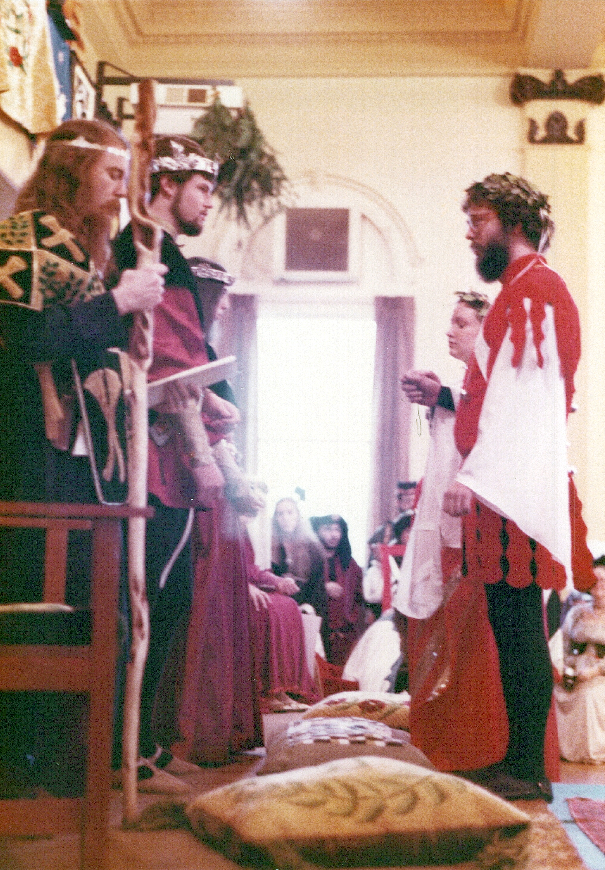 An Tir 12th Night, January 16, 1982. An Tir becomes a kingdom. Manfred and Morag are crowned King and Queen. Courtesy of the Lee of the Lowlands collection, Scanning An Tir Project.