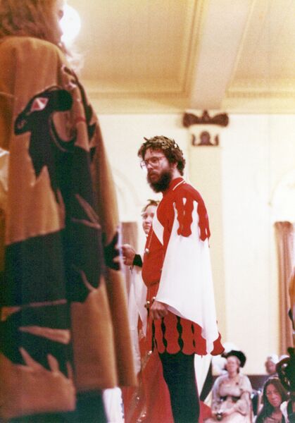An Tir 12th Night, January 16, 1982. An Tir becomes a kingdom. Manfred and Morag are crowned King and Queen. Courtesy of the Lee of the Lowlands collection, Scanning An Tir Project.