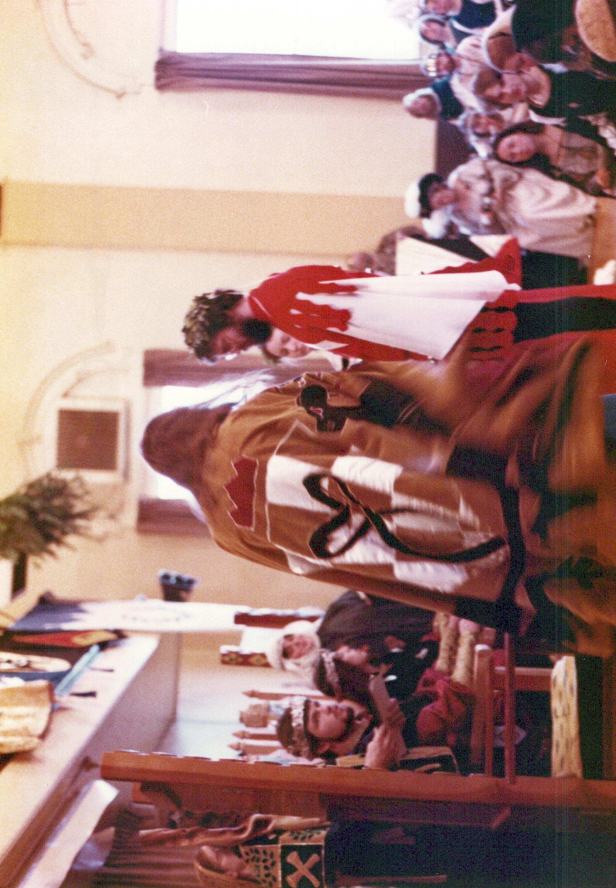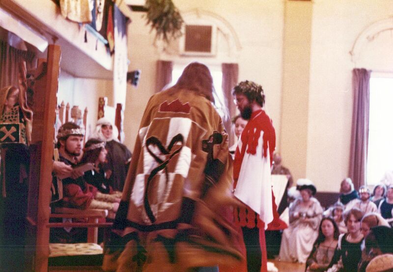 An Tir 12th Night, January 16, 1982. An Tir becomes a kingdom. Manfred and Morag are crowned King and Queen. Courtesy of the Lee of the Lowlands collection, Scanning An Tir Project.