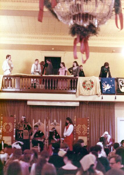 An Tir 12th Night, January 16, 1982. An Tir becomes a kingdom. Manfred and Morag are crowned King and Queen. Courtesy of the Lee of the Lowlands collection, Scanning An Tir Project.