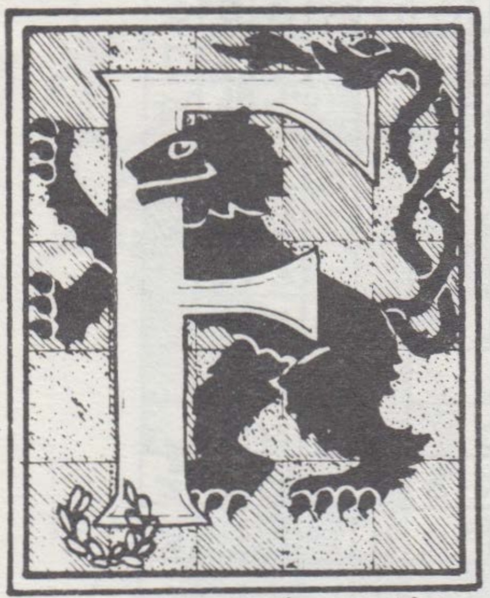 Illuminated capital drawn by Janet of Arden, published in The Crier May 1977.