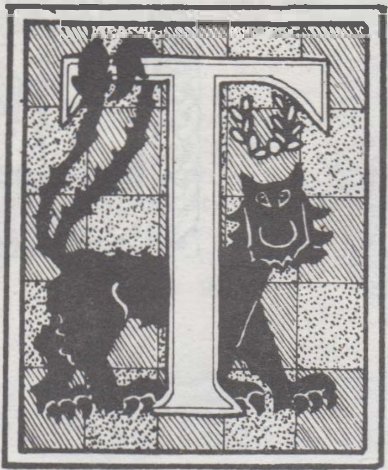 Illuminated capital drawn by Janet of Arden, published in The Crier June 1977.