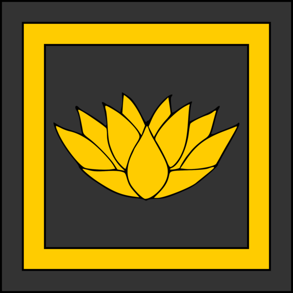 Badge of the Award of the Golden Lotus, square version. Sable, a lotus blossom in profile within an orle Or.
