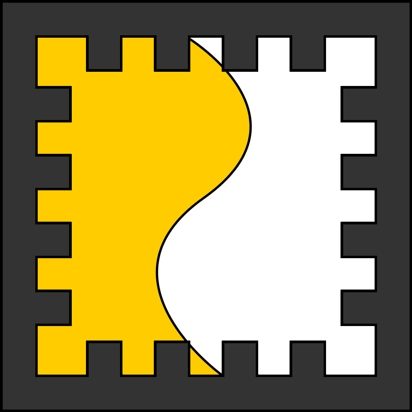 Honor of the Or and Argent badge, square version - Per pale embowed counter-embowed Or and argent, a bordure embattled sable..