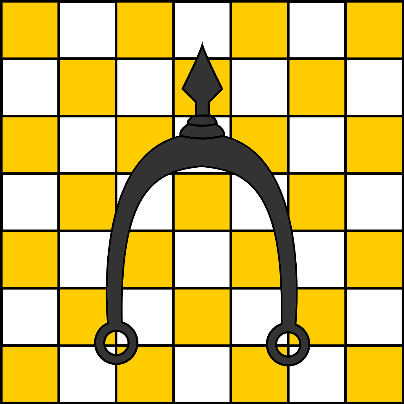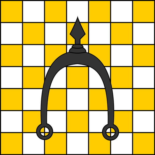 Badge for the Ordre de l’Esperon et du Lion, square version. Checky Or and argent, a prickspur sable.
