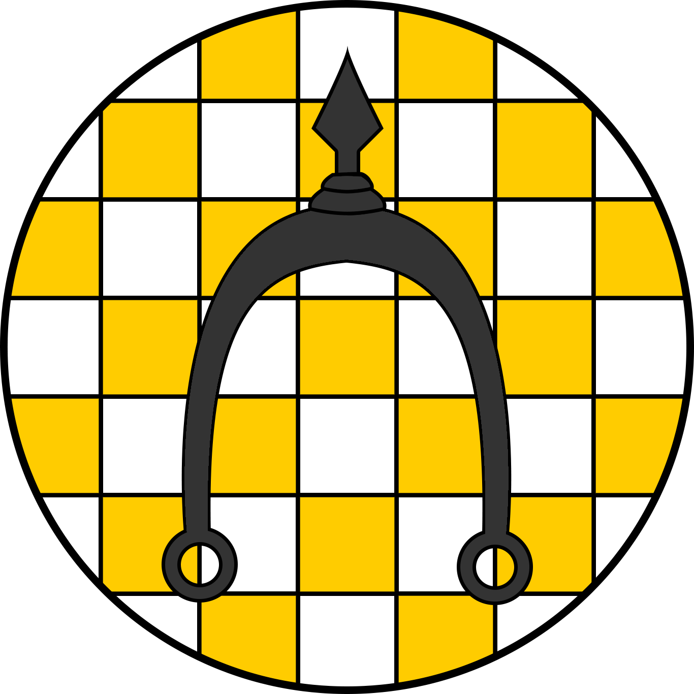 Badge for the Ordre de l’Esperon et du Lion, round version. Checky Or and argent, a prickspur sable.