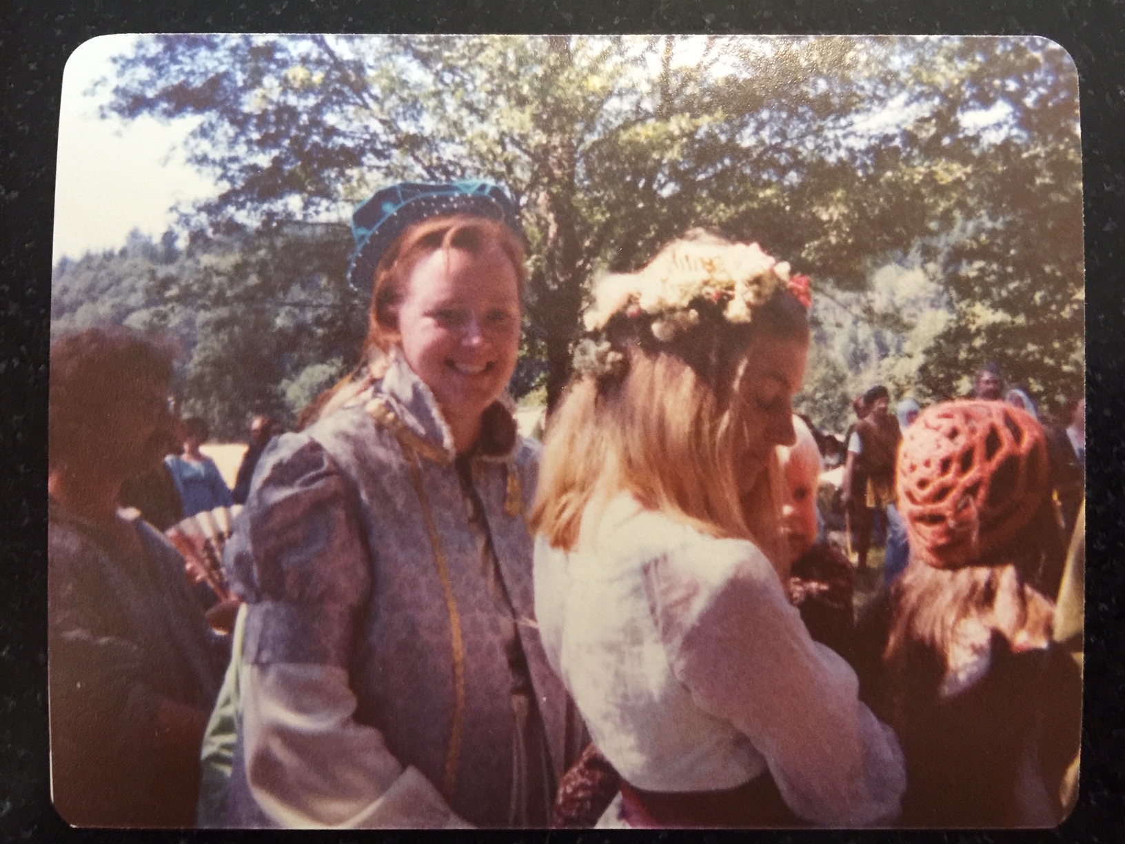 Allison and Stevana at the An Tir Coronation on 12 August 1977 in Maple Falls, WA. Photo courtesy of Theodulf of Borogrove.