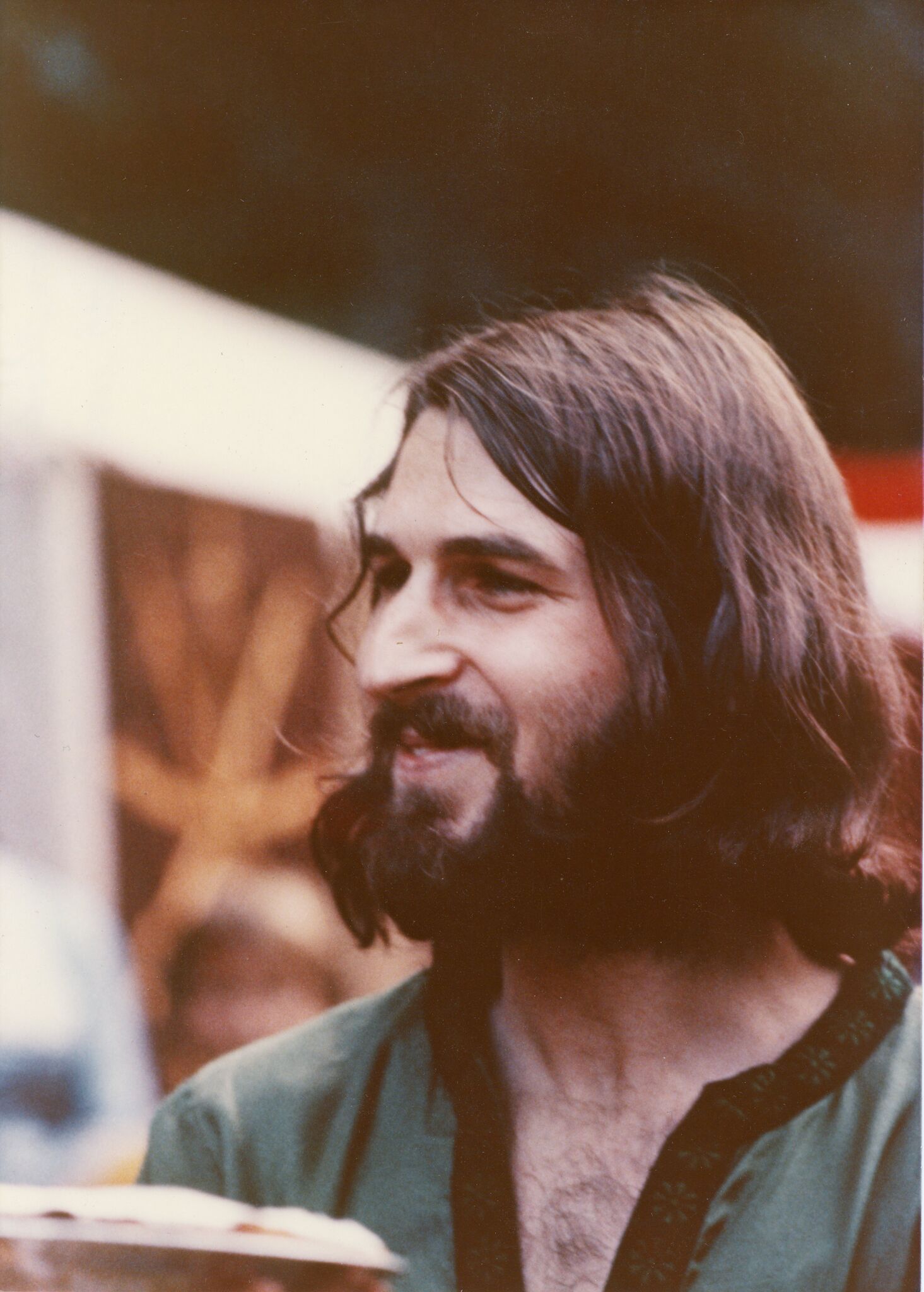 Theodulf of Borogrove at the 15th Coronet Tourney, July 1978, prior to having an auctioned, fund-raising pie thrown in his face. From Scanning An Tir, Theodulf Collection.