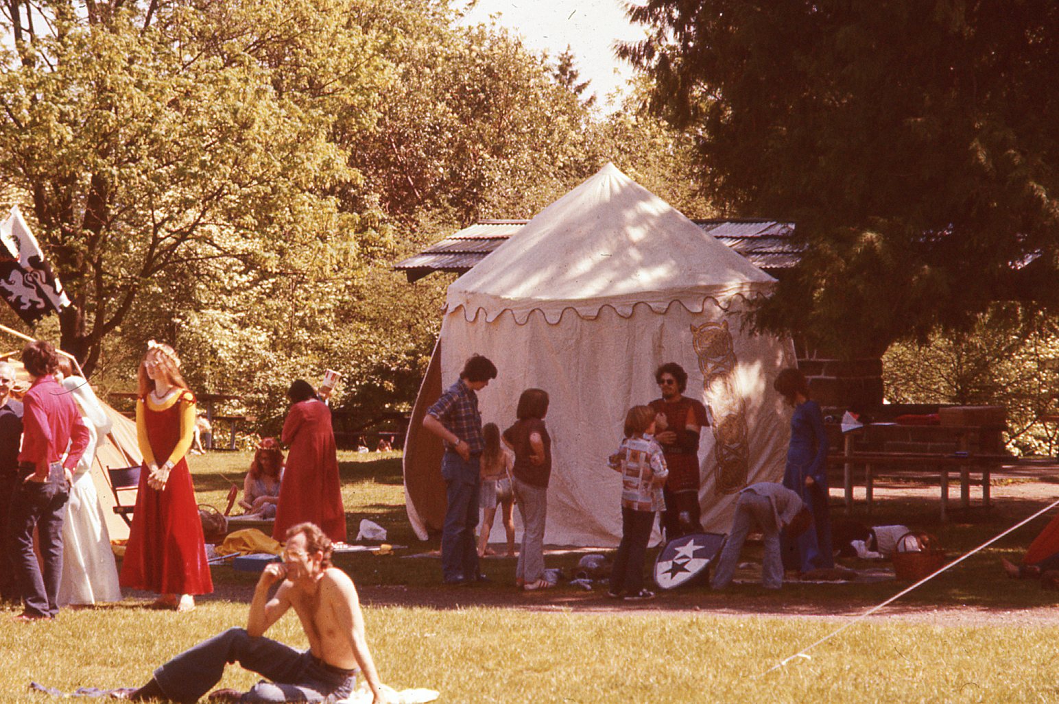 Monstro (pavilion) at the Saint Edwin’s Day Tourney and Beltaine in Madrone on May 1, 1976.