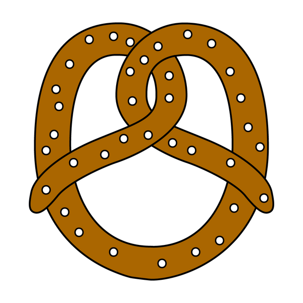 Badge for Fellowship of the Pretzel: (Fieldless) A pretzel proper, spotted argent. (Pending Registration)