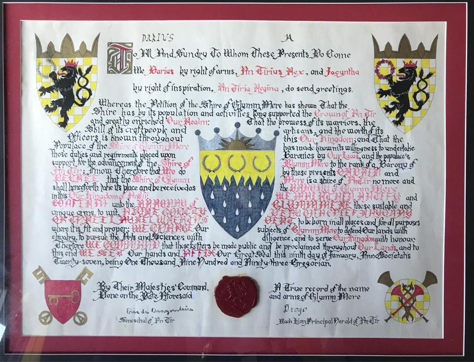 Glymm Mere Baronial Charter - 12th Night, Jan. 9, 1993, A.S. XXVII (27)