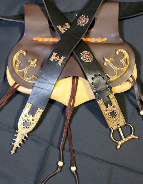 Men's leather belt inspired by extant examples, findings from extant example in Musée de Cluny: Le Monde Médiéval.