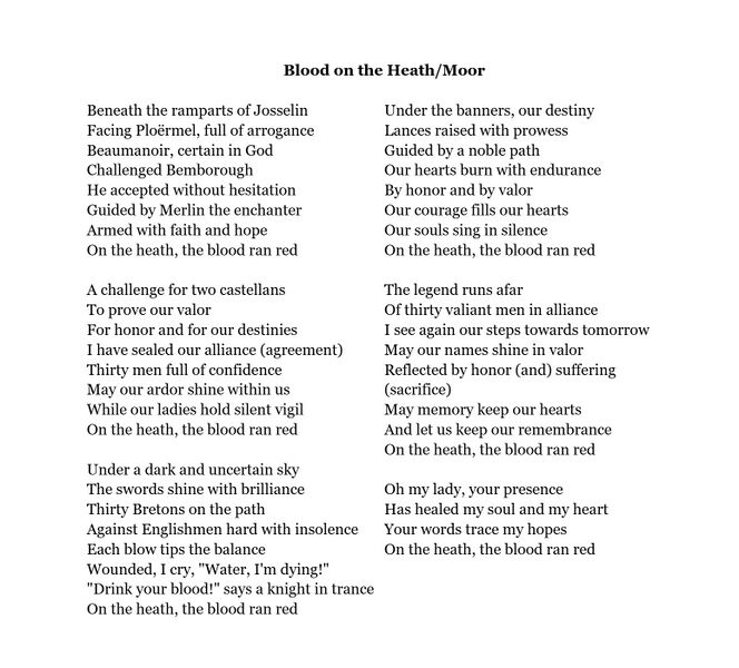 | current | 17:57, 24 January 2025 | 1,550 × 1,400 (408 KB) | HdBertoncourt (talk | contribs) | Original Poem about "Le Combat de Trente", English prose translation |
