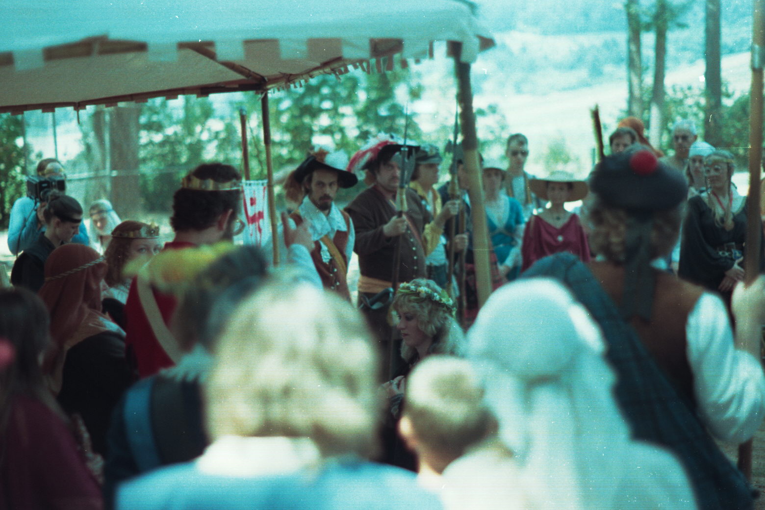 July Coronation, 10 July 1982. Manfred and Morag crown Torgul and Angharad. Photo courtesy of Theodulf of Borogrove.