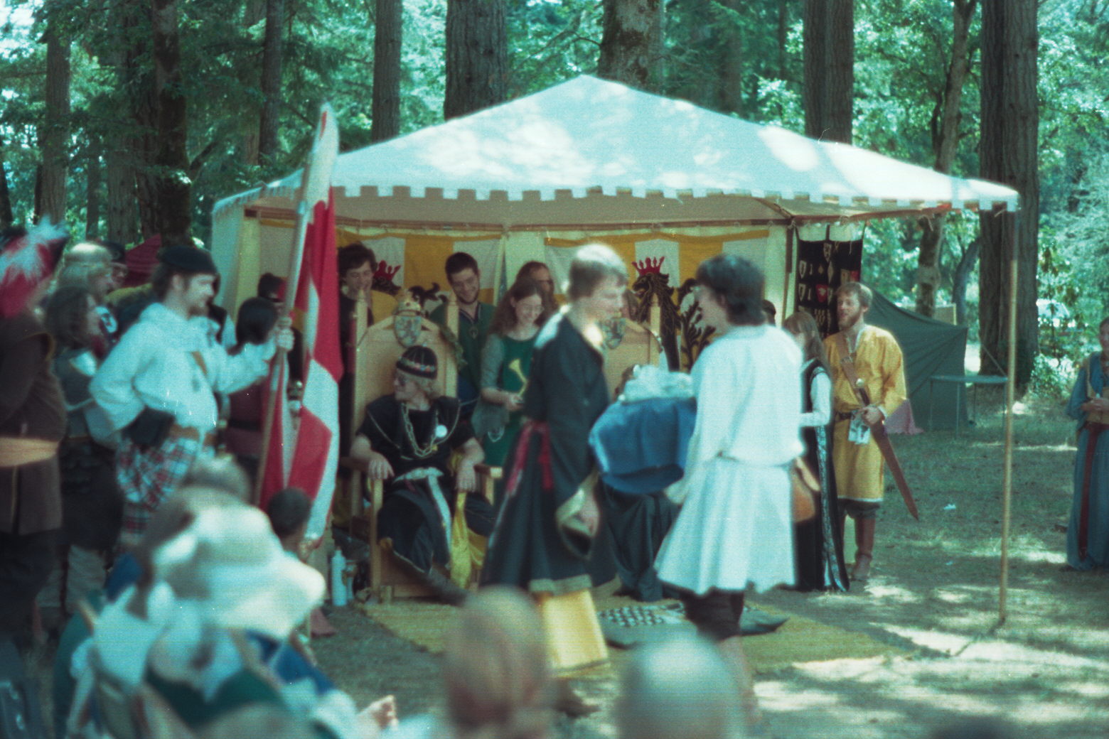 July Coronation, 10 July 1982. Manfred and Morag crown Torgul and Angharad. Photo courtesy of Theodulf of Borogrove.