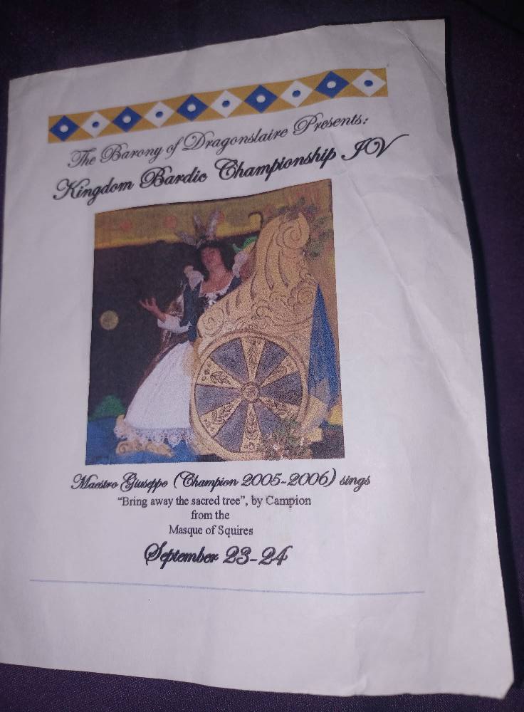 Kingdom Bardic Championship 2006 cover page, photo by J.d. Johann Shush