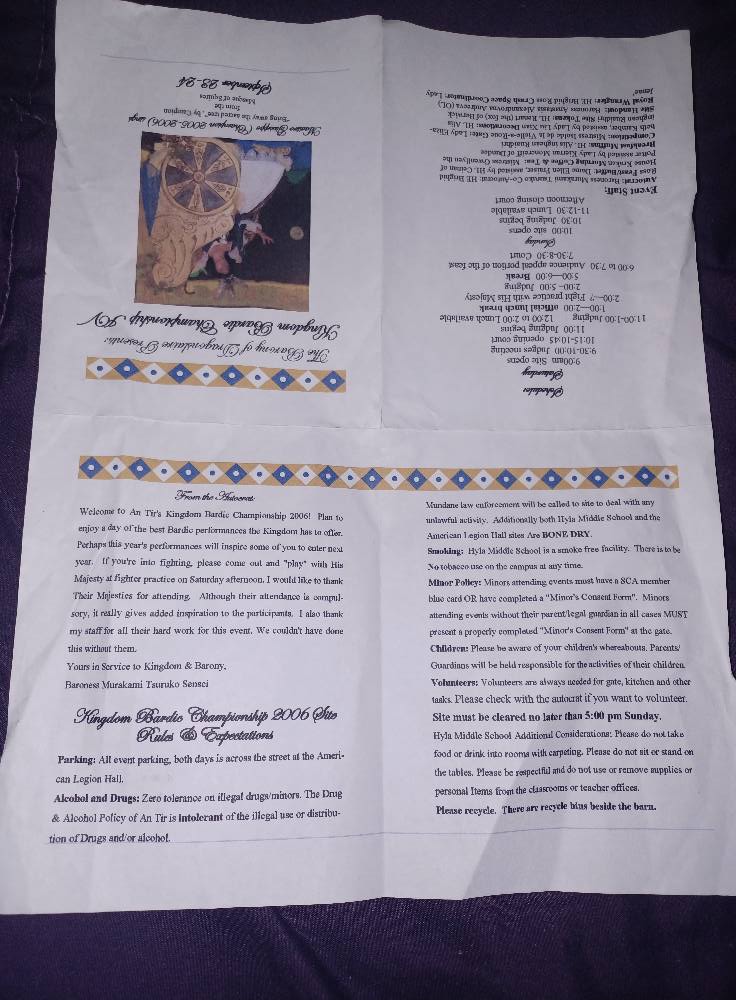 Kingdom Bardic Championship 2006 site rules, photo by J.d. Johann Shush