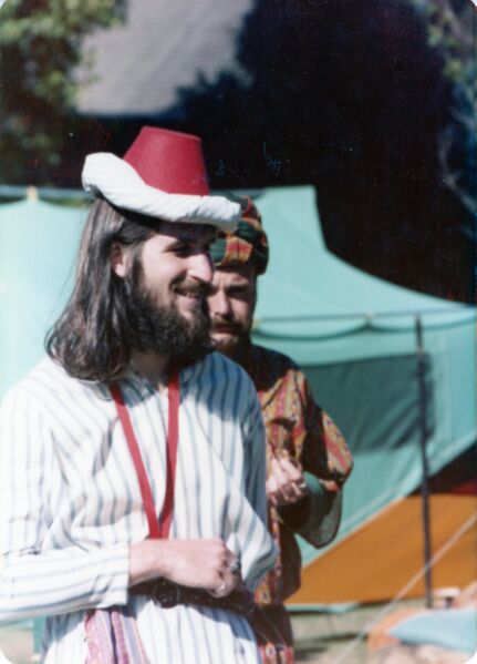 Theodulf at the Middle Eastern Tourney at the Lakeside School, July 1974 in Madrone. Photo courtesy of Theodulf of Borogrove.