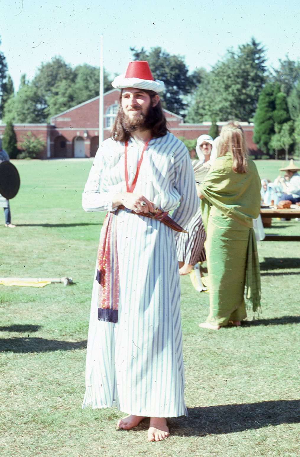 Theodulf at the Middle Eastern Tourney at the Lakeside School, July 1974 in Madrone. Photo courtesy of Theodulf of Borogrove.