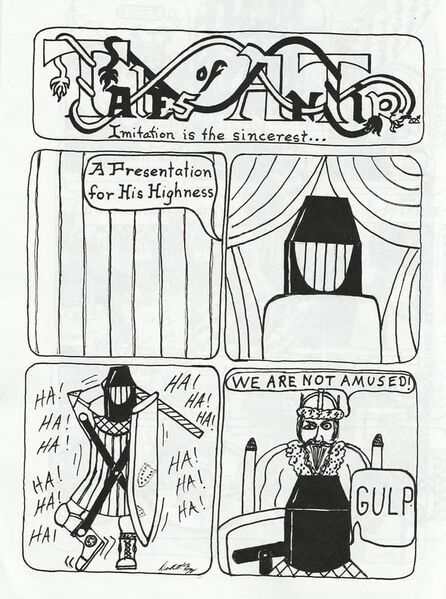 | current | 10:03, 3 September 2025 | 655 × 880 (235 KB) | SirRichard (talk | contribs) | Comic page featuring the story from Twelfth Night 1976 when “Adiantum then presented His Highness with a Walking Talking 3/4 Scale Elrond Doll. The resemblance was indeed startling.” From Tales of An Tir by Dublin Briggs (Sir Dublin O’Guinn). |