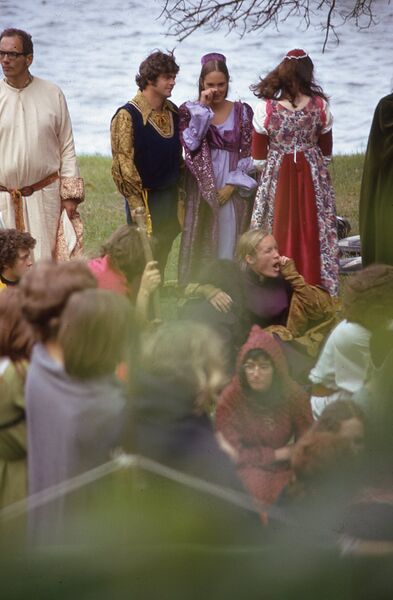 | current | 07:54, 23 April 2025 | 1,019 × 1,555 (237 KB) | SirRichard (talk | contribs) | Populace on the shores of Lake Washington at the Royal Tourney of Union, 1973 in Madrone. Guillaume di Vincent sitting and scratching his cheek the only one identified. Photo courtesy of Theodulf of Borogrove. |