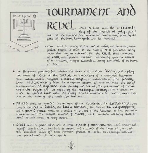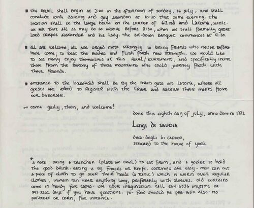 The House of York held a tournament and revel on July 16, 1972 at the home of Sholom and Judith’s house in Madrone at 62nd and Latona, Seattle.