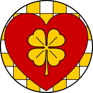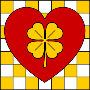 Checky Or and argent, on a heart gules a four-leaved clover slipped Or. | |||||||||