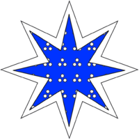 (Fieldless) A mullet of eight points azure estencely and fimbriated argent | ||||||